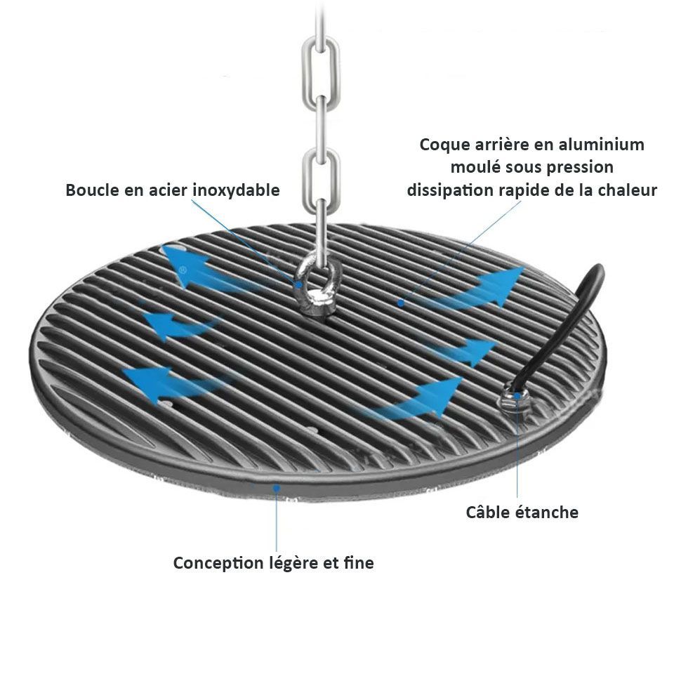 En résumé, l'éclairage avec un angle de 90° pour les lampes industrielles offre une large couverture, réduit les zones d'ombre, économise de l'énergie, minimise l'éblouissement et permet une adaptation flexible aux besoins d'éclairage spécifiques.