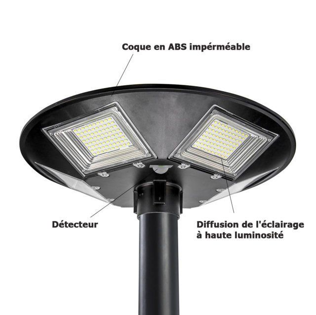 Les lampes solaires OVNI se fondent bien dans un milieu moderne. Aussi belles que puissantes, elles offrent une lumière solaire de 150 W ou 250 W adaptée pour éclairer de grandes surfaces extérieure comme cour, parking, rue ou jardin public. Le mode d’éclairage automatique accroît la fonctionnalité du luminaire qui est bien pratique pour éclairer spontanément son environnement dès la tombée de la nuit. La lampe atteint sa pleine charge au bout de 8 heures pour une autonomie de 12 à 15 heures.