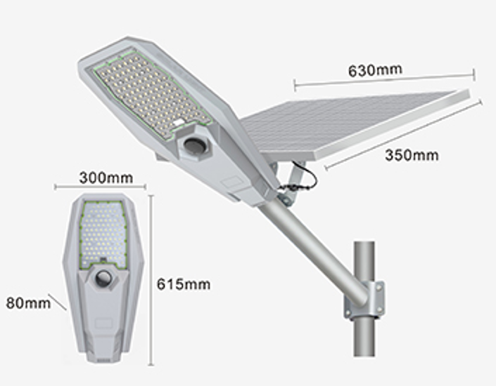 This model has an attractive appearance that makes this solar street light both useful and decorative. It will be ideal for illuminating and securing outdoor spaces such as balconies, courtyards, gardens and terraces. For greater savings and optimal lighting management, the luminaire offers different lighting modes. The brightness level and lighting time are adjustable via the remote control provided.