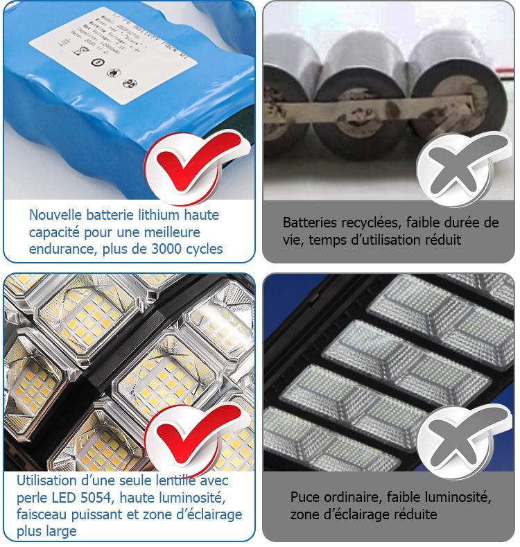 Les batteries LiFePO4 ont une durée de vie plus longue par rapport à d'autres types de batteries, telles que les batteries au plomb-acide. Elles peuvent résister à un plus grand nombre de cycles de charge et de décharge, ce qui les rend idéales pour des applications à long terme, comme l'éclairage public solaire.