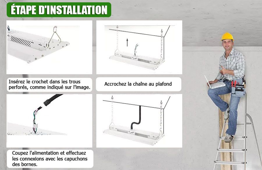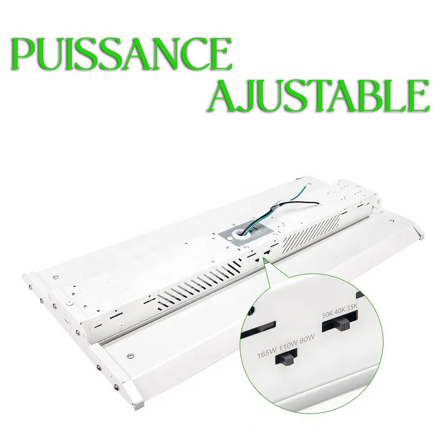 Lampe industrielle linéaireSérie FUSION9 en 1Puissance ajustable 80 / 110 / 165WCouleur ajustable 3000k / 4000k / 6000k