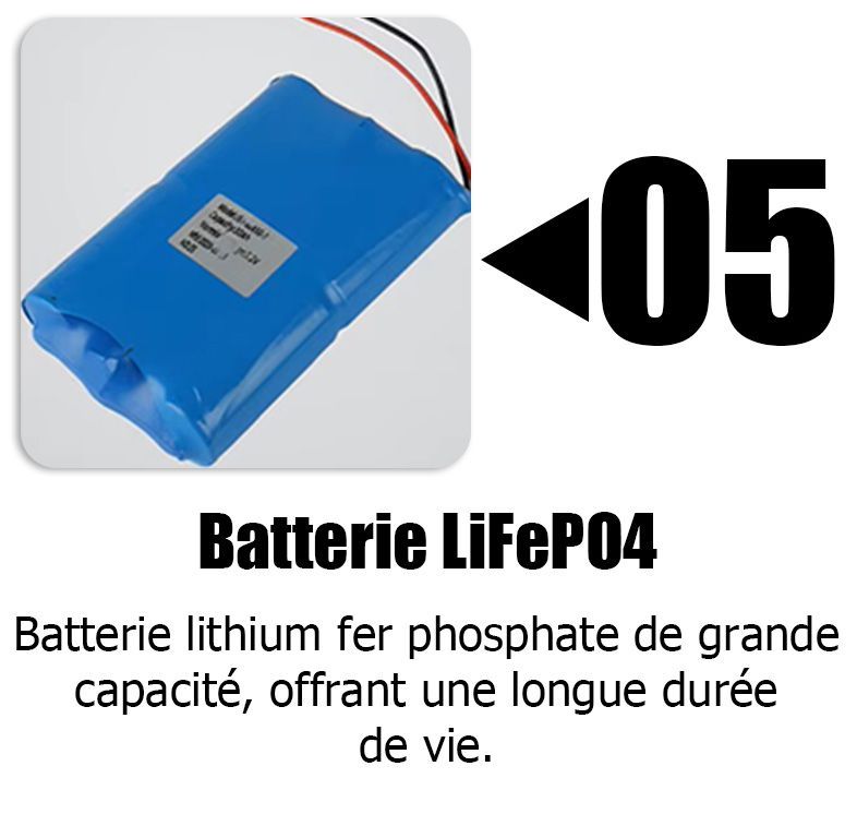 Les batteries LiFePO4 ont une durée de vie plus longue par rapport à d'autres types de batteries, telles que les batteries au plomb-acide. Elles peuvent résister à un plus grand nombre de cycles de charge et de décharge, ce qui les rend idéales pour des applications à long terme, comme l'éclairage public solaire.