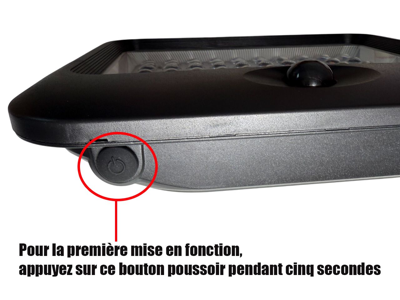 Pour la première mise en fonction, il est nécessaire d’appuyer sur le bouton poussoir pendant cinq secondes situé en dessous du projecteur.